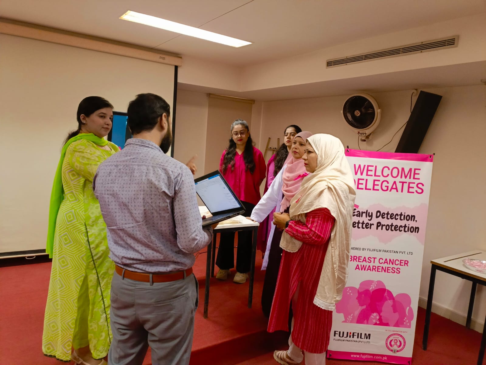 The purpose of the session was to enhance medical professionals’ understanding of early breast cancer detection through modern diagnostic imaging technologies. The representatives from Fujifilm Pakistan provided an in-depth overview of the Amulet Innovality Mammography System, highlighting its advanced imaging capabilities, precision, and role in improving diagnostic accuracy.